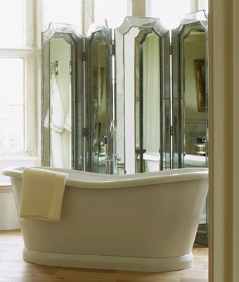 This MIRRORED folding screen is a striking example of how a single design element can provide both fabulous form and function in any living space.